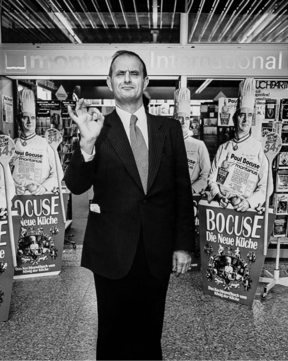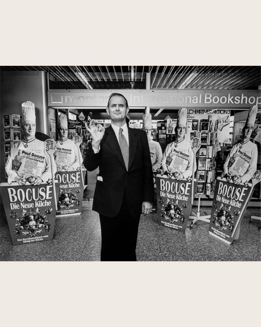 Paul Bocuse a influencé la gastronomie dans le monde entier, faisant la promotion d’une cuisine authentique et généreuse. On l’aperçoit ici, à Francfort en Allemagne, lors de la parution de son livre La Cuisine du Marché en 1979. Un ouvrage qui valorise les produits frais et de saison, dans la tradition de la cuisine lyonnaise.
