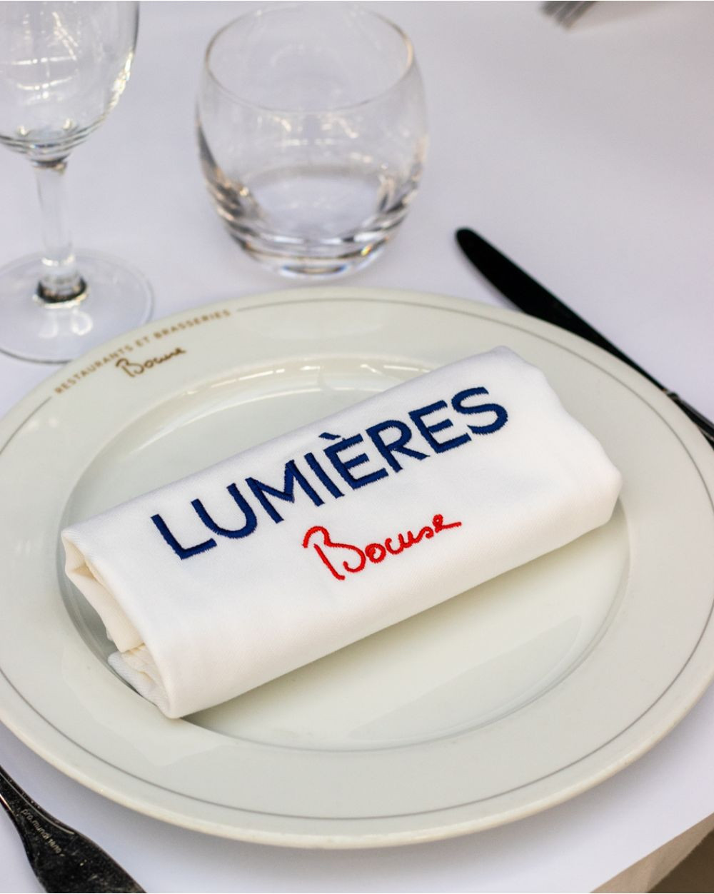 Plongez dans l’excellence du savoir-faire textile français avec nos serviettes brodées avec le nom des restaurants et brasseries emblématiques des Maisons Bocuse.