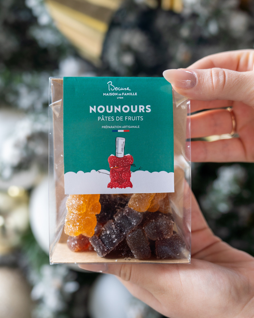 Dans l’esprit d’excellence cher à la Maison Bocuse, ces oursons en Pâte de Fruit artisanale réveille avec douceur la nostalgie des confiseries d’autrefois. Leur forme tendre et leur éclat délicatement sucré rappellent les gourmandises que l’on savourait enfant.