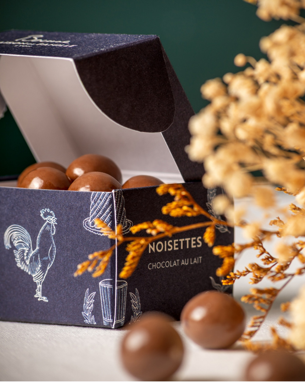 Succombez à l’excellence de nos Noisettes enrobées de chocolat au lait, une alliance irrésistible entre croquant et gourmandise.